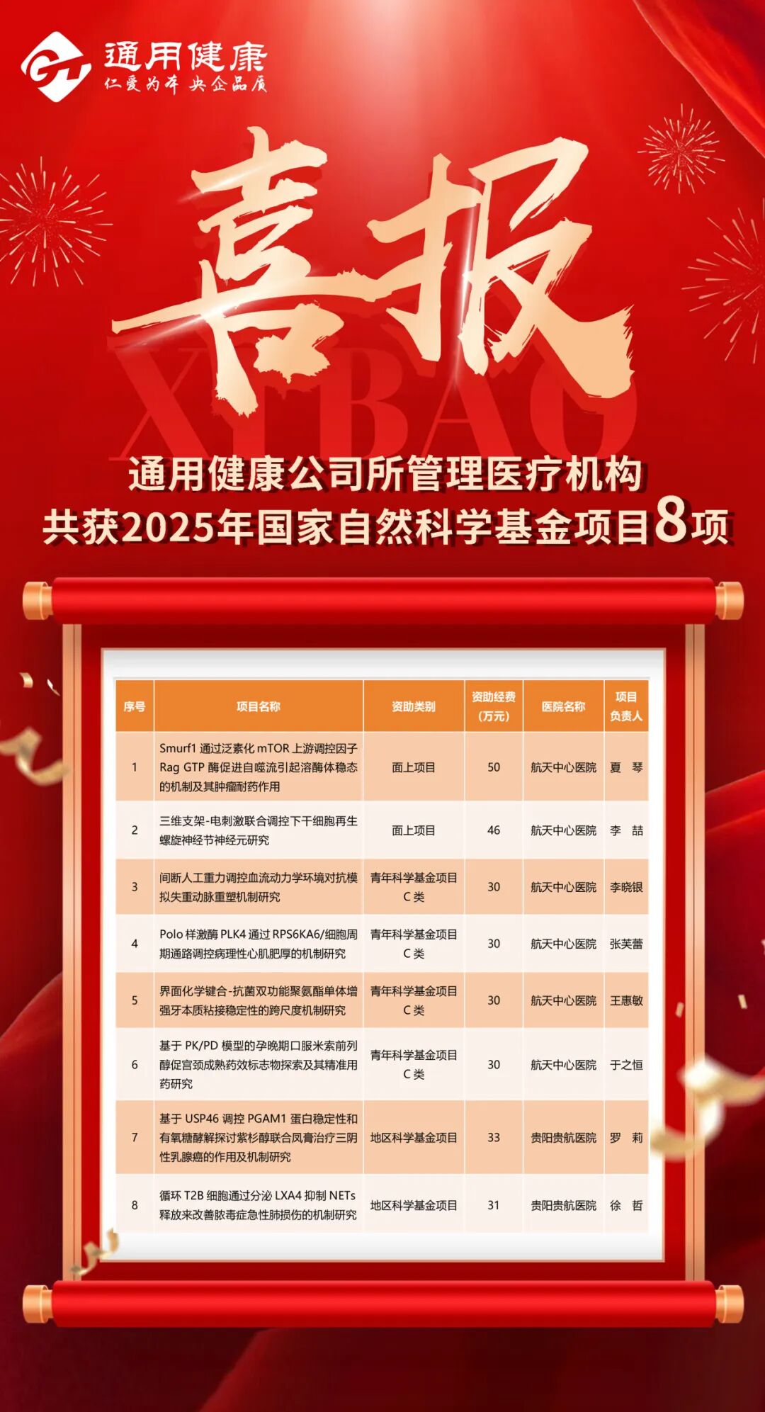 喜报!8项!通用健康公司2025年国家自然科学基金立项取得新突破